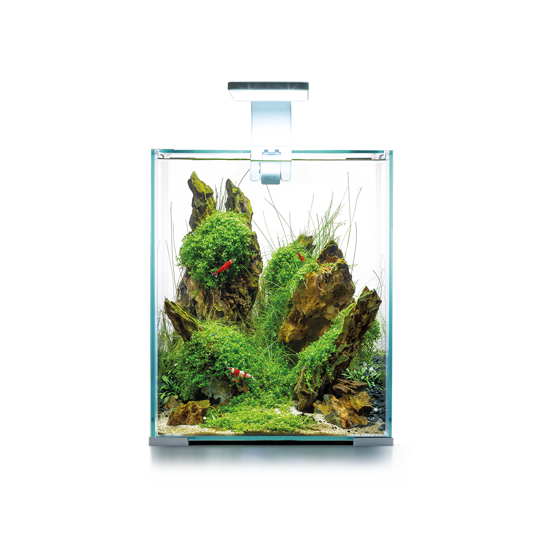 Shrimp Set Day&Night to funkcjonalny zestaw charakteryzujący się nowoczesnym, surowym designem. Akwarium wraz z pokrywą tworzy minimalistyczną, szklaną kostkę. Niewielki rozmiar sprawi, że akwarium stanie się niebanalną ozdobą nawet małych pomieszczeń.